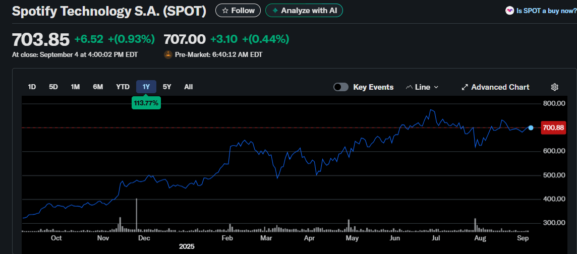 A 2006-ban Stockholmban alapított Spotify (SPOT) a világ legnagyobb igény szerinti audió platformja, 2025-ben havi 678 millió aktív felhasználóval és 268 millió prémium előfizetővel. Kétségtelenül ez a cég a viszonyítási pont a témában - itt zenét, podcastokat és akár hangoskönyveket is találhatunk.