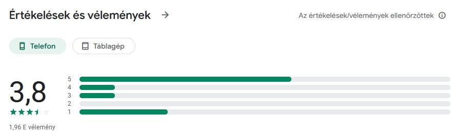 A Google Play Áruházból letölthető mobilalkalmazás felhasználói vegyes, de inkább pozitív véleményeket írnak. Átlagosan 3,8 csillagot kapott az 5-ből, mégpedig közel 2.000 vélemény alapján.