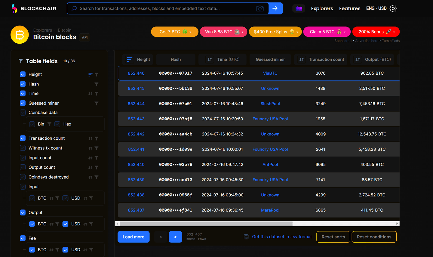 Itt láthatod a legutóbbi blokkokat egymás alatt felsorolva. A baloldali menüpontok segítségével akár személyre is szabhatod, hogy milyen információkat szeretnél megjeleníteni.