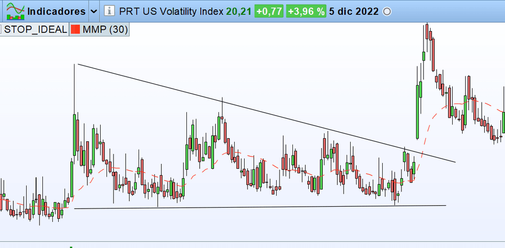 2020 márciusában a harminc napos mozgóátlag elvesztése (hasonlóan a 200 naposhoz) ismét csökkenő trendet jelez a Covid-járvány miatt, és miután 2020 során minimumokat értünk el, látható, miként képez emelkedő zászlót. Miután ismét felfelé tört ki, egyre magasabb minimumok és egyre jobb kilátások vannak az Ibex 35 árfolyamára vonatkozóan.