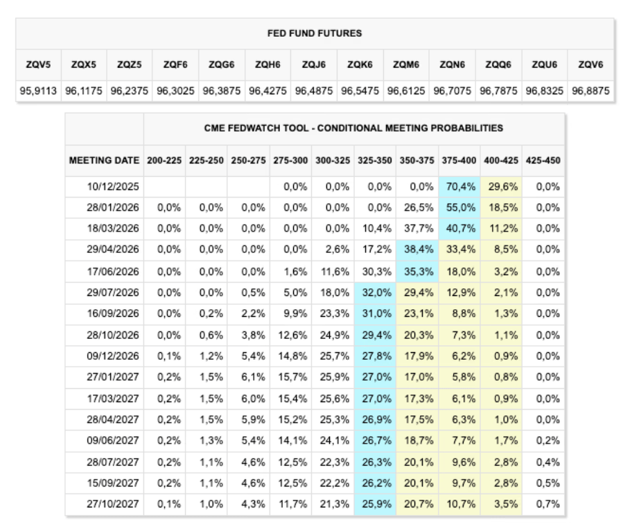 A CME FedWatch Tool becslései szerint, a 2025. december 10-i ülésre: