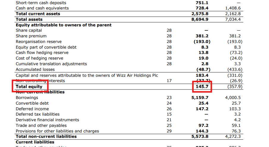 A Wizz Air teljes saját tőkéje az évben 145,7 millió euró volt.