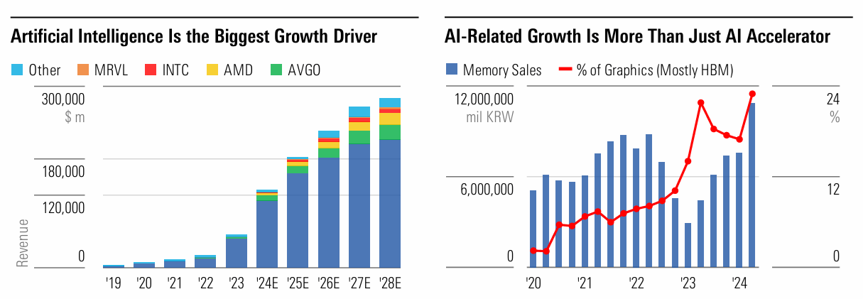 2023-ban az iparág 11%-os globális bevételcsökkenést szenvedett el, de 2025-re egyértelmű fellendülés várható. A Gartner szerint az ágazat bevételei idén várhatóan 15,5%-kal nőnek, elérve a 721 milliárd dollárt. Ezt a fellendülést elsősorban az MI chipek iránti kereslet robbanása hajtja - e téren az NVIDIA, az AMD és a Broadcom a technológiai verseny éllovasai.