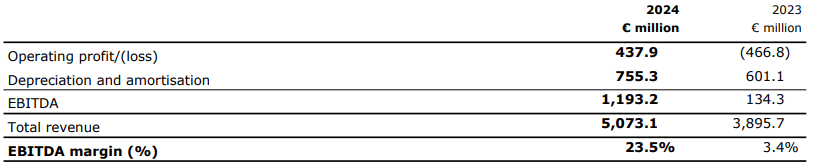 Példaként nézzük meg a Wizz Air EBITDA-ját 2024 és 2023 között: