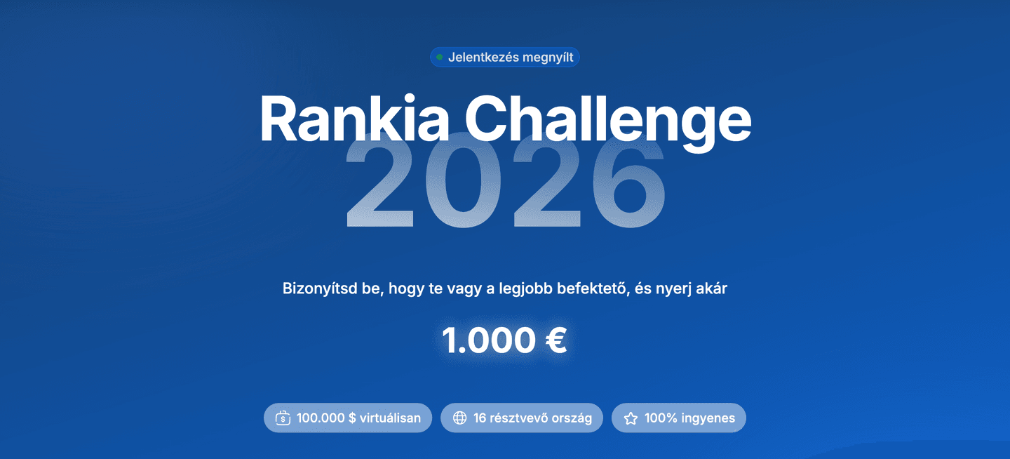 A Rankia Challenge 2026 egy ingyenes tőzsdei játék valódi nyereményekkel, amely a hosszú távú befektetői képességeidet teszi próbára. A Rankia MyPortfolio eszközén keresztül a résztvevők egy 100.000$ értékű virtuális portfóliót kezelnek, részvényekbe, ETF-ekbe és befektetési alapokba fektetve világszerte.