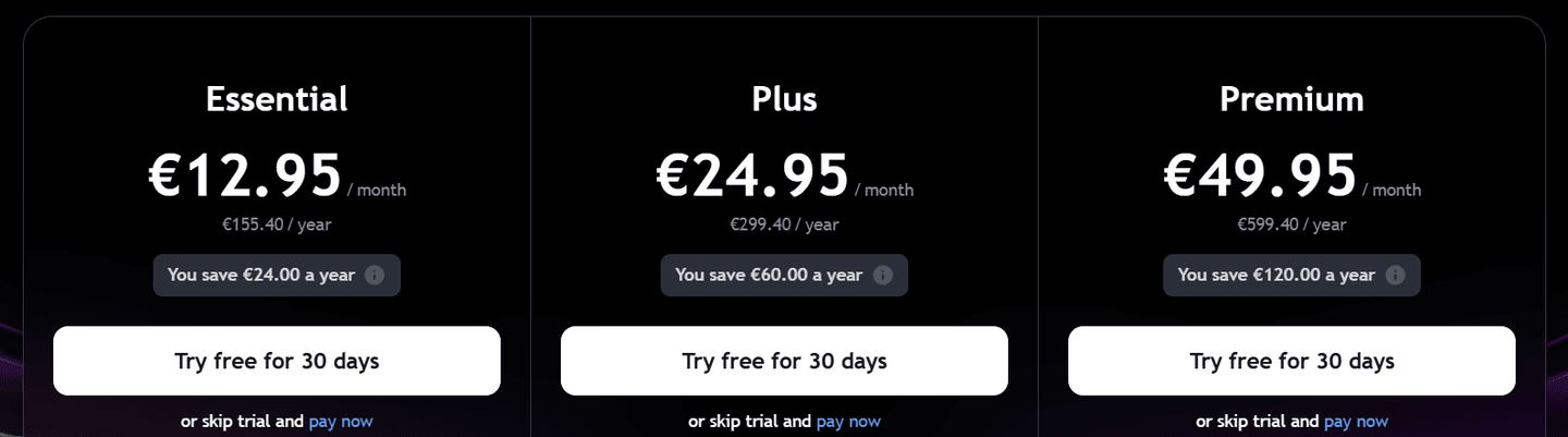 A TradingView-nak 4 árkategóriája van. Szerencsére van egy ingyenes verzió is. Ez lehetővé teszi az emberek számára, hogy bepillantást nyerjenek és lássák, mit kínál a platform. Azonban elég korlátozott, és nehéz lenne komoly kereskedésre használni. A Pro terv körülbelül 150 USD/év, a Pro+ kevesebb mint 300 USD/év. A Premium terv kevesebb mint 600 USD/év.
