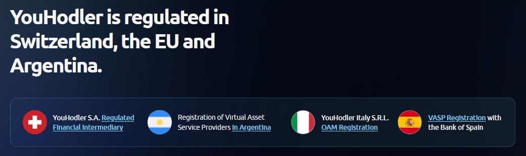 A YouHodler az olasz Organismo Agenti e Mediatori Creditizi (OAM) szabályozása alá tartozik.
